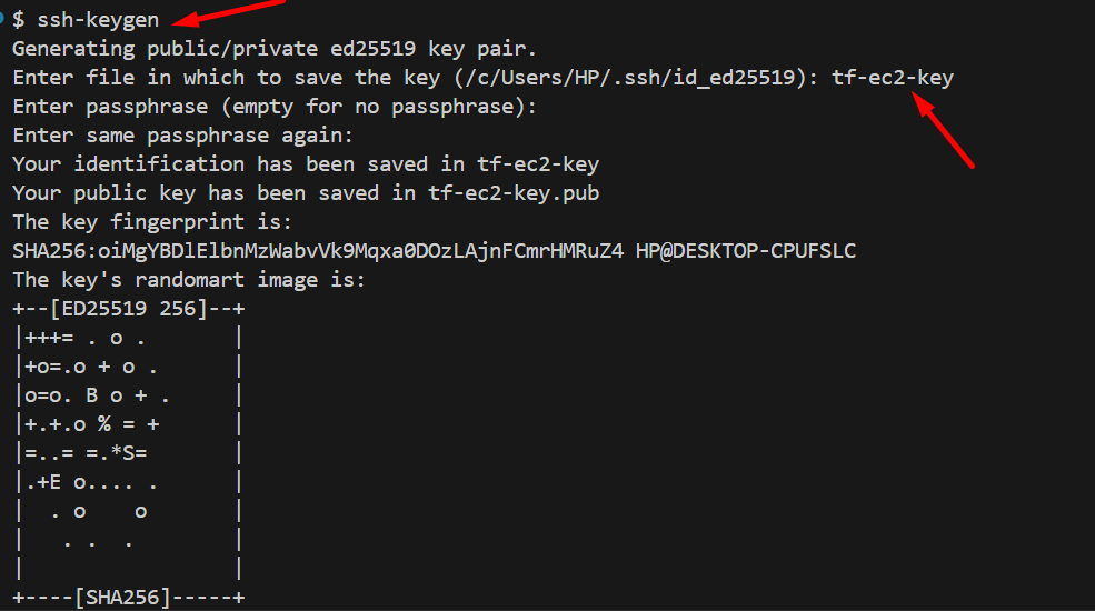 • Enter your key name in my case I provide tf-ec2-key because we will use this in ec2.tf file